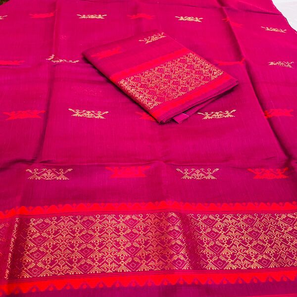 ![]() Description : A Nuni Cotton Mekhela Chadar Is A Traditional Assamese Two-piece Garment Crafted From Nuni Cotton, A Type Of Silk Known For Its Softness And Vibrant Sheen. The Mekhela Is The Lower Portion, Wrapped Around The Waist And Lower Body, While The Chadar Is A Long Piece Draped Over The Shoulder And Upper Body. These Sets Are Popular For Their Comfort, Breathability, And Elegant Drape, Making Them Suitable For Both Casual And Festive Occasions. Location : Assam, India