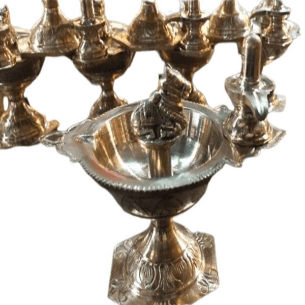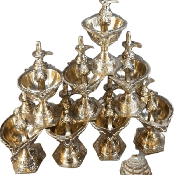 1690 Piece Description : A Traditional Indian Brass Diya Is A Small, Often Handcrafted, Oil Lamp Made From Brass That Serves As A Source Of Light And A Symbol Of Purity, Faith, And Devotion In Religious Ceremonies And Festivals Like Diwali. More Than Just A Decorative Item, Its Flame Represents Knowledge, Wisdom, And Prosperity, Illuminating Homes, Temples, And The Path Toward Spiritual Enlightenment. These Lamps Typically Hold A Cotton Wick Dipped In Ghee Or Vegetable Oil And Are Used In Daily Poojas And Special Occasions To Create A Divine, Auspicious Ambiance. Location : Tamilnadu, India