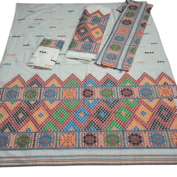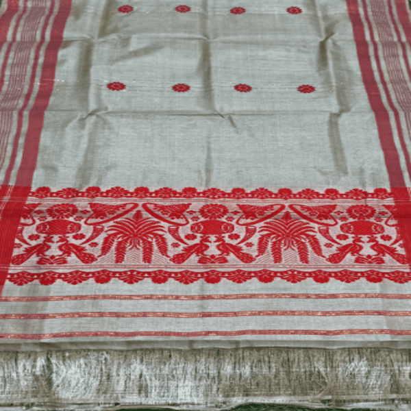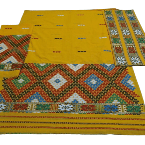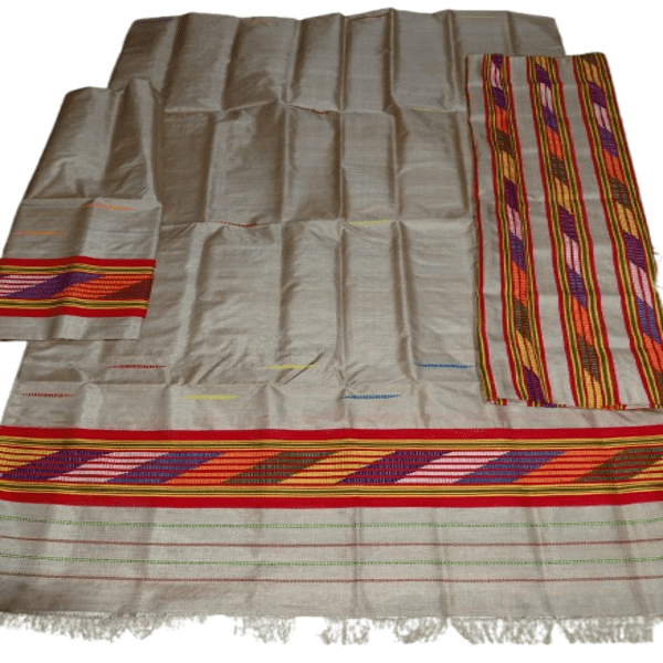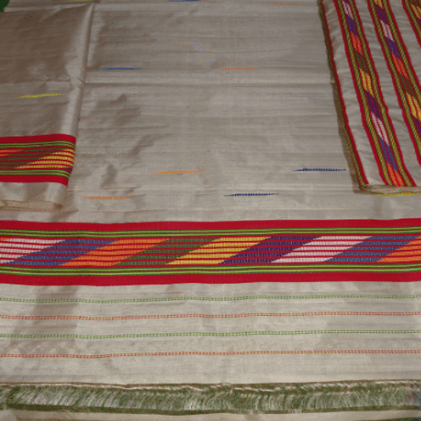 1560 Set Description : The Poti Is A Decorative, Woven Border Strip That Is An Integral Part Of A Mekhela Chadar, The Traditional Two-piece Attire Of Assamese Women. While The Mekhela Is The Cylindrical Skirt And The Chadar Is The Shawl-like Drape, The Poti Is Stitched Along The Edges To Provide A Finished Look And To Enhance The Garments Aesthetic Appeal. These Strips Are Often Intricately Woven With Motifs Inspired By Nature, Traditional Assamese Jewelry, Or Other Geometric Patterns. Poti Can Feature Zari Work, Contrasting Colors, Or Elaborate Designs, And Its Material Is Chosen To Complement The Main Fabric Of The Mekhela Chador, Which Can Range From Muga Or Pat Silk To Cotton. This Craftsmanship Highlights The Rich Handloom Heritage Of Assam, With The Poti Serving As Both A Functional Reinforcement And A Vital Decorative Element. Location : Assam, India