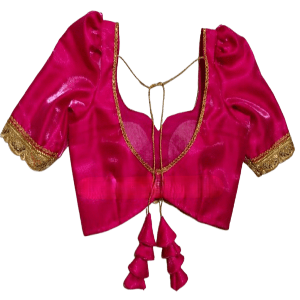 A saree blouse, or choli, is a fitted top worn with an Indian saree, covering the upper body and completing the traditional ensemble. It is a significant fashion element, featuring diverse styles from classic round necks to modern off-shoulder and backless designs. Blouses are crafted from various fabrics like silk, cotton, and georgette and can be adorned with intricate embroidery, embellishments, or unique patterns, reflecting rich Indian culture and evolving fashion trends. Location : Tripura, India