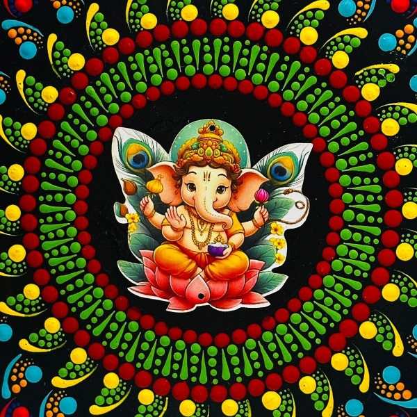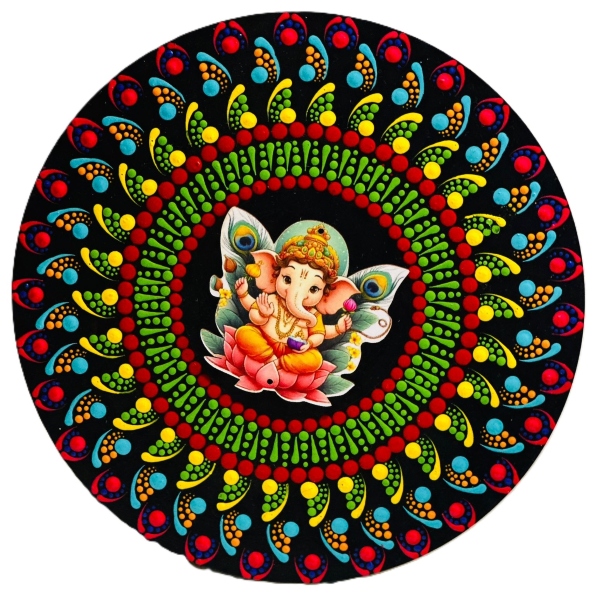 ![]() Description : A Ganesha Dot Mandala Wall Painting Is A Stunning, Intricate Artwork That Blends The Traditional Sacred Geometry Of A Mandala With The Modern, Meditative Technique Of Dot Painting. It Features A Central Image Of Lord Ganesha, The Hindu Deity Of New Beginnings, Wisdom, And The Remover Of Obstacles, Surrounded By A Symmetrical, Cosmic Pattern Of Countless Small Dots. Location : New Delhi, India