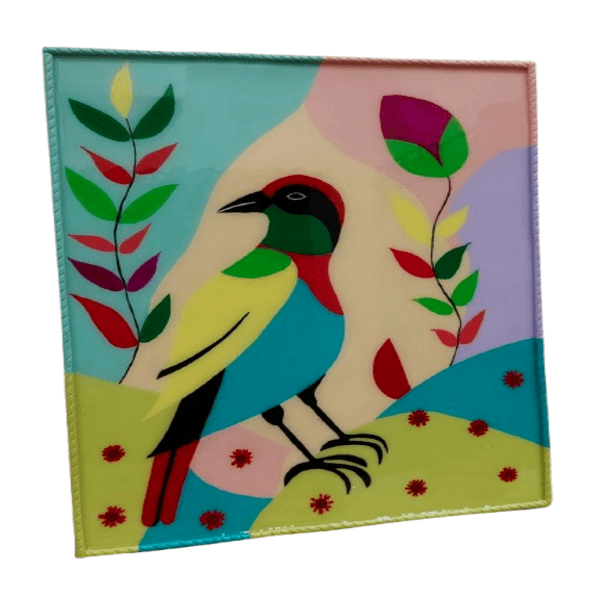 1560 Piece Description : A Handmade Boho Wall Decoration With A Resin Art Effect Is A Vibrant And Eclectic Piece That Combines The Free-spirited Aesthetic Of Bohemian Decor With The Glossy, Fluid, And Often Three-dimensional Look Of Resin Art. This Type Of Decor Is Characterized By Its Layering Of Earthy Textures, Rich Colors, And Often Incorporates Natural And Mixed Media Elements For A Truly Unique, Artisanal Feel. Location : Chhatisgarh, India