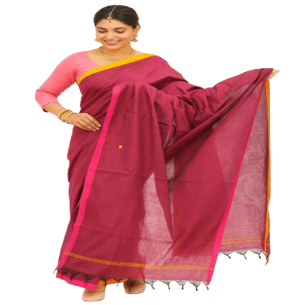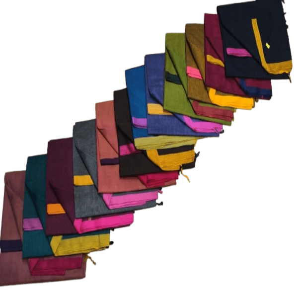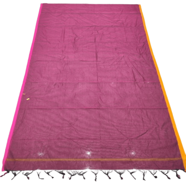 1040 Piece Description : A Dhaniakhali Handloom Soft Khadi Cotton Saree Is A Traditional, Handwoven Saree From West Bengal, India, Characterized By Its Soft, Breathable, And Lightweight Khadi Cotton Fabric, Which Is Hand-spun And Hand-woven. It Features A Distinct Velvety Texture From Its Fine Thread Work, A Long, Colorful, And Often Striped Border, And Is Known For Its Comfortable Drape, Making It An Elegant Choice For Both Casual And Festive Wear. Location : West Bengal, India