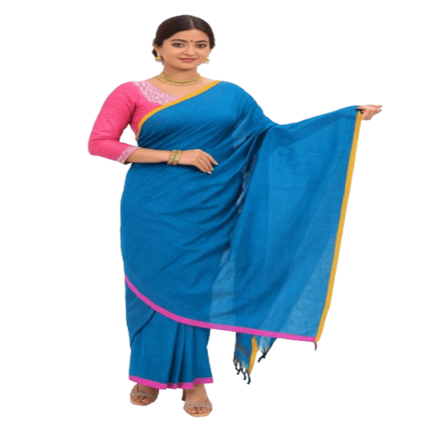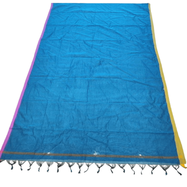 1040 Piece Description : A Dhaniakhali Handloom Soft Khadi Cotton Saree Is A Traditional, Handwoven Saree From West Bengal, India, Characterized By Its Soft, Breathable, And Lightweight Khadi Cotton Fabric, Which Is Hand-spun And Hand-woven. It Features A Distinct Velvety Texture From Its Fine Thread Work, A Long, Colorful, And Often Striped Border, And Is Known For Its Comfortable Drape, Making It An Elegant Choice For Both Casual And Festive Wear. Location : West Bengal, India