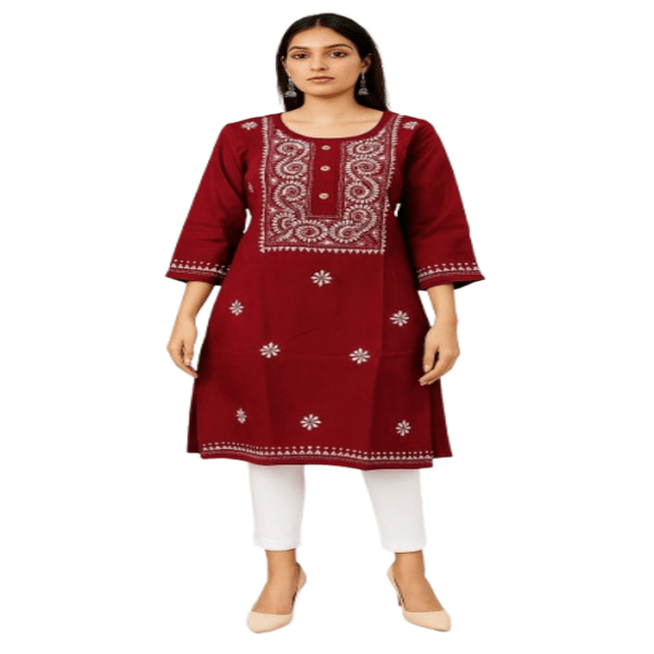 4950 Piece Description : A Cotton Long Kurti Is A Comfortable, Lightweight, And Breathable Tunic Made From Soft Cotton Fabric, Extending To Or Beyond The Knee. It Is A Versatile Garment, Ideal For Daily Wear, Casual Outings, Or Semi-formal Occasions, Offering A Relaxed Fit That Allows For Unrestricted Movement. Long Kurtis Are Available In Various Styles, Colors, And Prints And Can Be Paired With Leggings, Pants, Or Jeans For Different Looks. Location : West Bengal, India