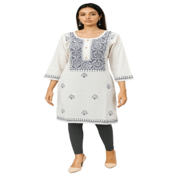 715 Piece Description : A Cotton Long Kurti Is A Comfortable, Lightweight, And Breathable Tunic Made From Soft Cotton Fabric, Extending To Or Beyond The Knee. It Is A Versatile Garment, Ideal For Daily Wear, Casual Outings, Or Semi-formal Occasions, Offering A Relaxed Fit That Allows For Unrestricted Movement. Long Kurtis Are Available In Various Styles, Colors, And Prints And Can Be Paired With Leggings, Pants, Or Jeans For Different Looks. Location : West Bengal, India