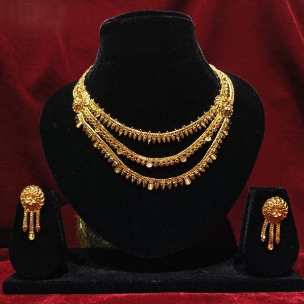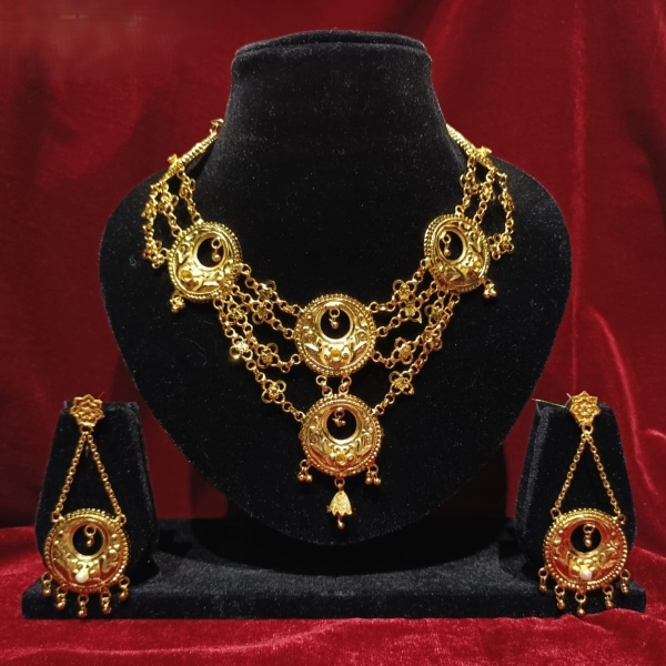 3770 Set Description : Experience The Warmth And Beauty Of A Gold Finish With This Exquisite Collection. Each Piece Is Skilfully Created With A Copper Base And Finished With A Radiant 24-carat Gold Plating, Offering A Stunning Visual Appeal. The Careful Design Captures The Essence Of Elegant Style, Providing A Beautiful Accessory That Can Enhance Any Look. This Jewellery Allows You To Enjoy The Luxurious Appearance Of Gold, Adding A Touch Of Glamour To Your Ensemble. Location : West Bengal, India