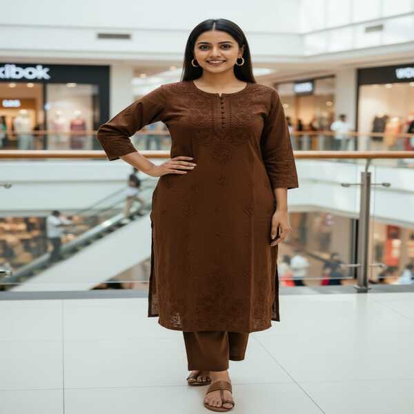 4950 Set Description : A Rayon Cotton Chikankari Kurti With Palazzo Set Is A Two-piece Outfit Featuring A Long Kurti (tunic) And A Matching Palazzo (wide-leg Pants), Both Made From Lightweight Rayon Cotton. The Kurti Is Adorned With Delicate, Hand-embroidered Chikankari Work, A Traditional Craft From Lucknow, Which Gives The Set A Blend Of Traditional And Modern Appeal. The Breathable Rayon Fabric Ensures Comfort For All-day Wear, Making It Suitable For Both Casual And Festive Occasions. Location : Uttar Pradesh, India