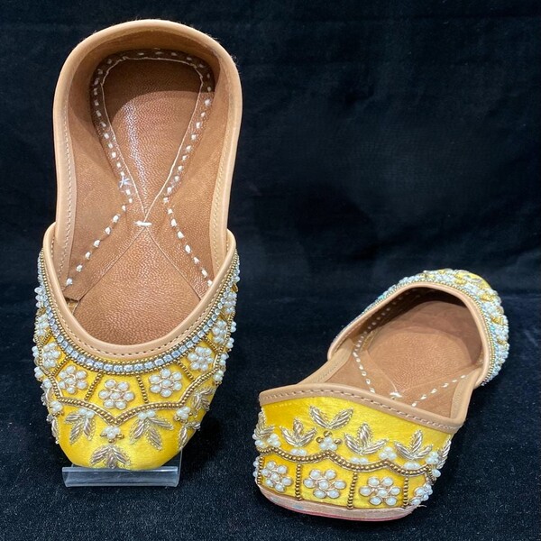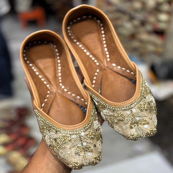 520 Pair Description : A Punjabi Jutti Is A Traditional Indian Shoe That Is Handcrafted From Leather, Featuring A Closed, Slip-on Design With Intricate Embroidery, Beads, Or Other Embellishments. Originally Worn By Royalty, These Versatile Shoes Are Now Popular For Both Traditional And Modern Outfits, Offering Both Style And Comfort. Location : Uttar Pradesh, India