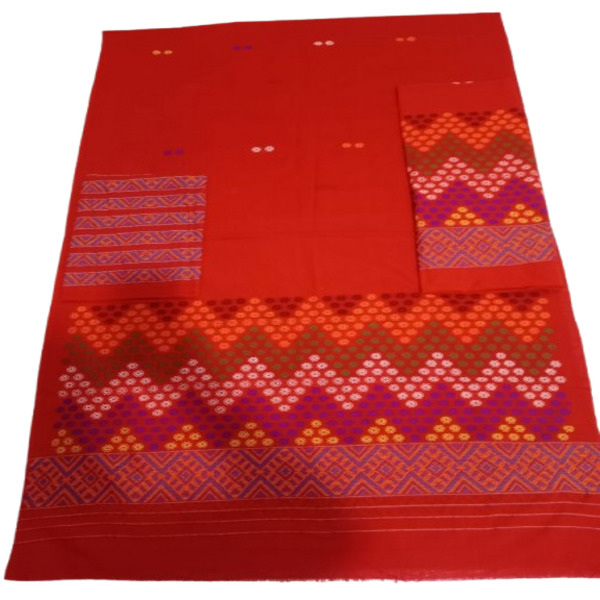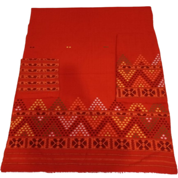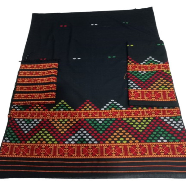 3900 Set Description : A Mising Mekhela Chadar Is A Traditional Handwoven Assamese Attire For Women From The Mising Community, Distinguished By Its Unique Geometric And Floral Motifs, Often Woven In Vibrant Colours. It Consists Of Two Pieces: The Mekhela Is The Lower Garment, A Sarong-like Skirt, And The Chadar Is The Upper Body Wrap. The Designs Are Symbolic, With Triangles Representing Hills And Floral Patterns On A Black Background Symbolizing The Night Sky. Location : Assam, India