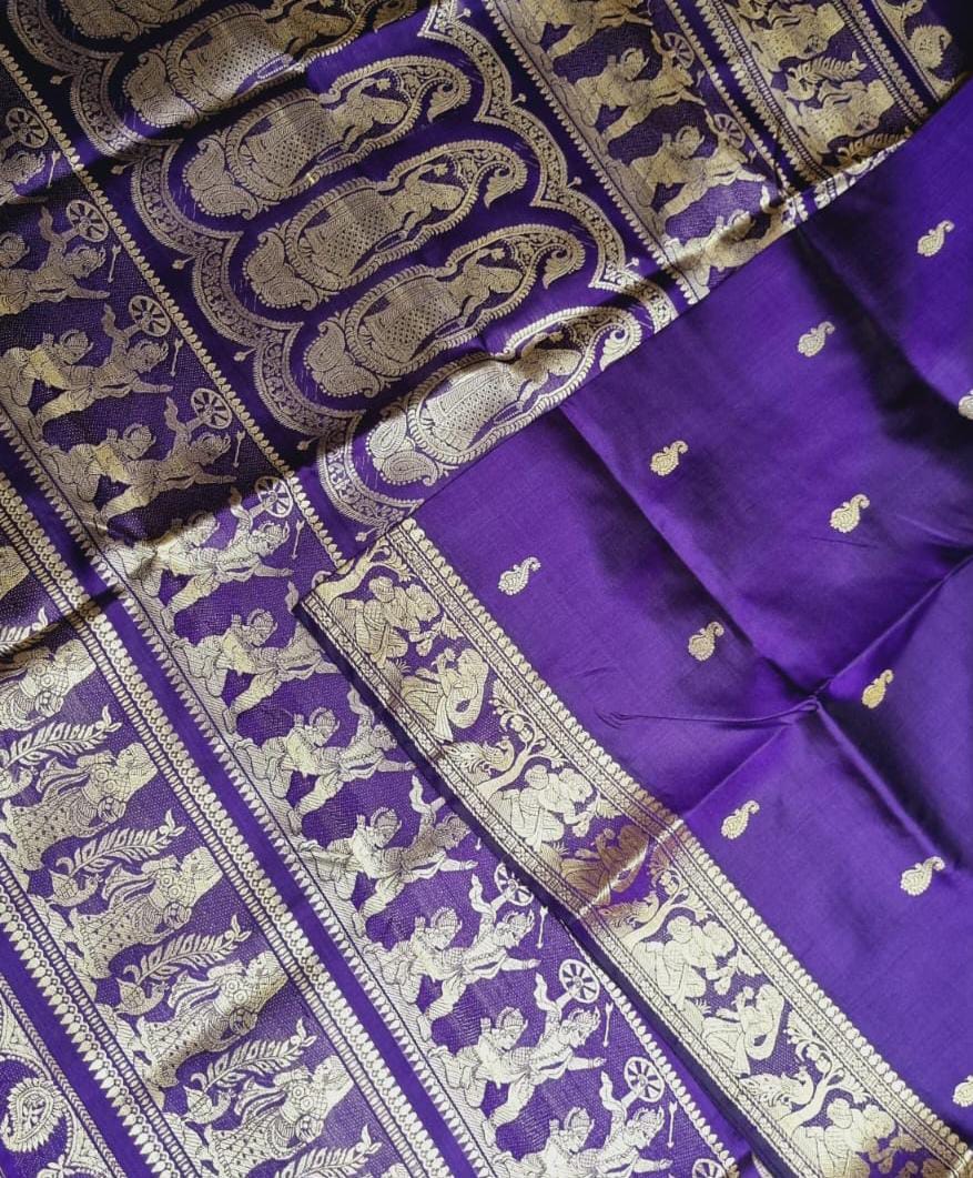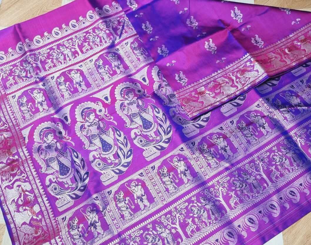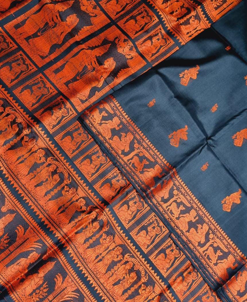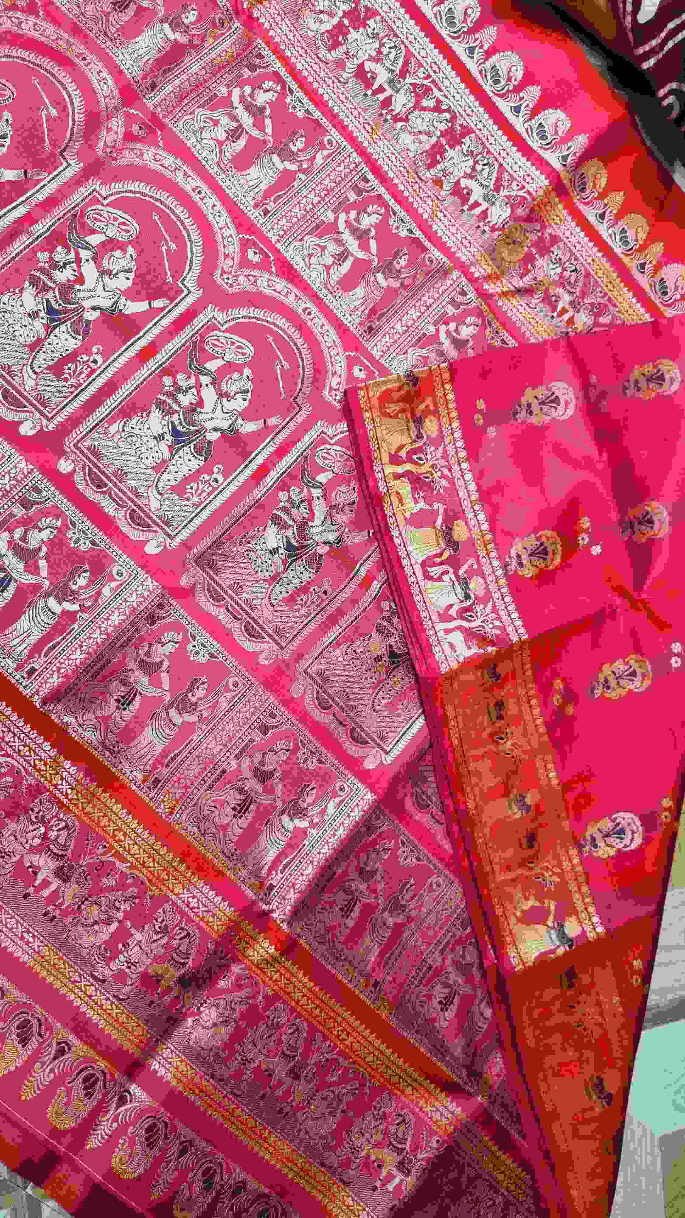 ![]() Description : Baluchari Saris Illustrate Hindu Mythological Scenes, Nature, Folklore, Legends, Historical Events, And Abstract Designs. They Showcase Gods, Heroes, Nature Elements, Love Stories, Battles, And Contemporary Patterns. Location : West Bengal, India