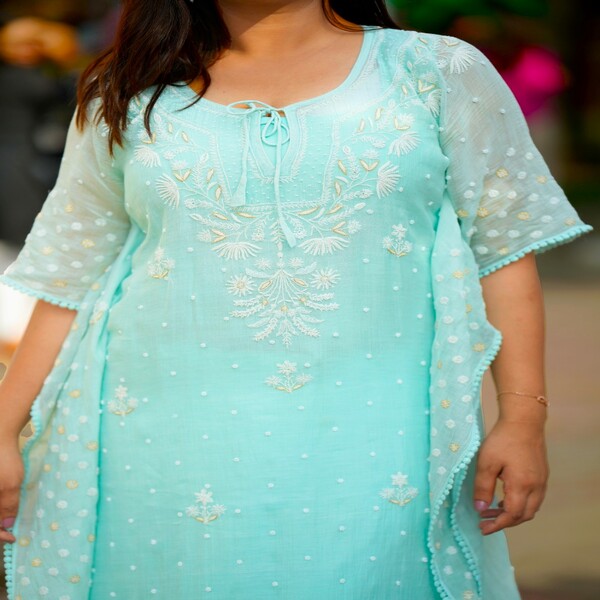 6370 Piece Description : A Chikankari Kaftan Is A Loose, Flowing Garment Featuring Delicate, Hand-stitched Embroidery Known As Chikankari, Which Originated In Lucknow, India. These Kaftans Are Made From Fabrics Like Cotton, Silk, Or Georgette, And Are Designed For Comfort And Style, Often Worn For Casual Or Festive Occasions. The Embroidery Typically Uses White Thread On Light-colored Or Pastel Fabrics, Creating An Elegant, Artisanal Look. Location : Uttar Pradesh, India