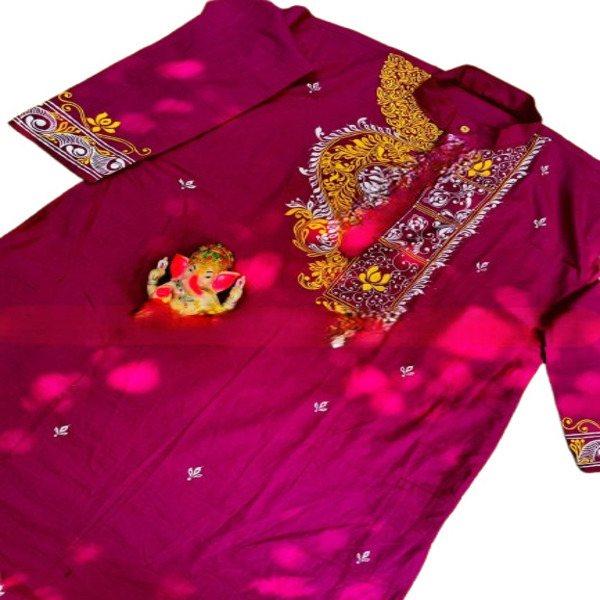 1105 Piece Description : A Kalka Punjabi Kurta Is A Mens Long, Loose-fitting Tunic Made Of Fabric Like Cotton Or Khadi Cotton, Often Handcrafted With A Kalka Or Paisley-like Embroidery Or Hand-painted Design. The Kalka Refers To The Intricate Pattern, Which Are Hand-painted Or Embroidered, Making It A Decorative, Festive, Or Formal Ethnic Wear Option. Location : West Bengal, India