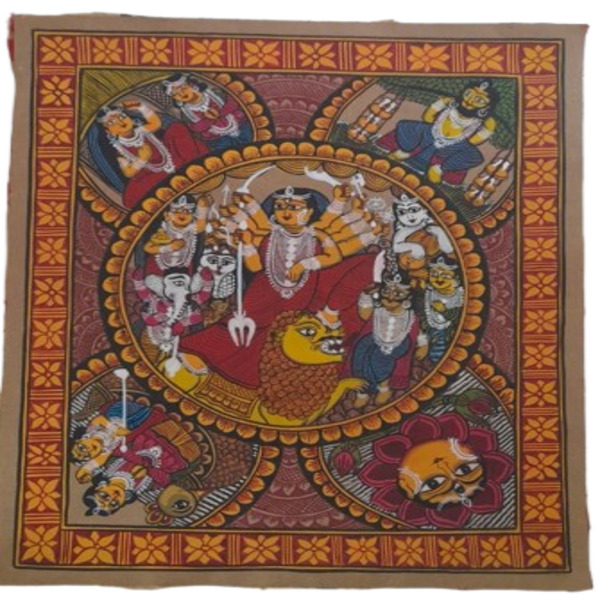 3850 Piece Description : Pattachitra Is A Traditional Indian Scroll Painting Art Form From Odisha And West Bengal, Characterized By Intricate Details, Natural Colours, And Mythological Narratives Like The Tales Of Hindu Deities. The Word Pattachitra Comes From The Sanskrit Words Patta (cloth) And Chitra (picture). Paintings Are Created On A Cloth Canvas Prepared With A Chalk And Tamarind Paste Mixture And Are Often Framed With Floral Borders. Location : West Bengal, India