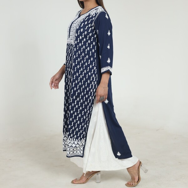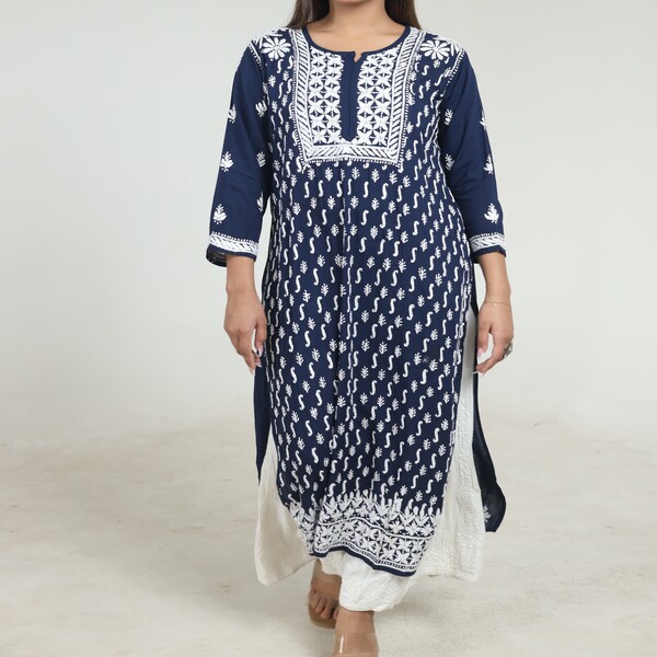 3250 Piece Description : A Chikankari Kurta Featuring Butis (small Embroidered Motifs) Is A Traditional Indian Garment Celebrated For Its Delicate Handwork. The Term Buti Refers To Individual, Scattered Designs, Typically Depicting Small Floral Elements Like Jasmine Or Rose Petals, Leaves, Or Tiny Dots, Rather Than A Dense, Continuous Pattern. These Motifs Are Created Using Classic Lucknowi Chikankari Stitches Such As Bakhiya (shadow Work), Phanda (knot Work), Or Taipchi (running Stitch), Adding A Subtle, Elegant Texture To The Fabric. The Butis Can Be Distributed All Over The Kurta For A Balanced Look Or Concentrated Around The Neckline, Sleeves, And Hem. Traditionally Made From Fine White Cotton Or Muslin With Matching White Thread, Modern Versions Use Diverse Fabrics Like Georgette Or Rayon And Come In Various Colours, Making The Buti-patterned Chikankari Kurta A Versatile Piece That Embodies Subtle, Timeless Grace Suitable For Both Everyday Elegance And Special Occasions. Location : Uttar Pradesh, India