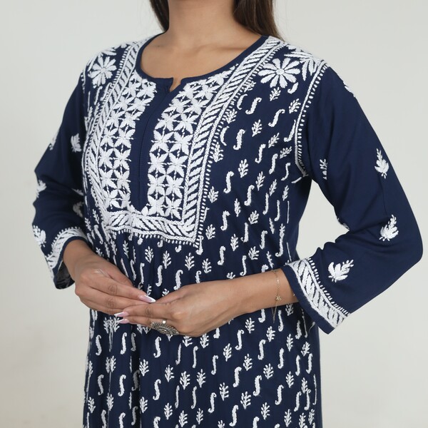 3250 Piece Description : A Chikankari Kurta Featuring Butis (small Embroidered Motifs) Is A Traditional Indian Garment Celebrated For Its Delicate Handwork. The Term Buti Refers To Individual, Scattered Designs, Typically Depicting Small Floral Elements Like Jasmine Or Rose Petals, Leaves, Or Tiny Dots, Rather Than A Dense, Continuous Pattern. These Motifs Are Created Using Classic Lucknowi Chikankari Stitches Such As Bakhiya (shadow Work), Phanda (knot Work), Or Taipchi (running Stitch), Adding A Subtle, Elegant Texture To The Fabric. The Butis Can Be Distributed All Over The Kurta For A Balanced Look Or Concentrated Around The Neckline, Sleeves, And Hem. Traditionally Made From Fine White Cotton Or Muslin With Matching White Thread, Modern Versions Use Diverse Fabrics Like Georgette Or Rayon And Come In Various Colours, Making The Buti-patterned Chikankari Kurta A Versatile Piece That Embodies Subtle, Timeless Grace Suitable For Both Everyday Elegance And Special Occasions. Location : Uttar Pradesh, India