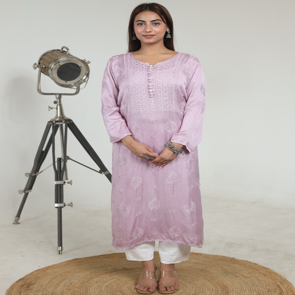 5525 Piece Description : A Chikankari Muslin Kurti Is A Soft, Lightweight, And Breathable Traditional Garment Featuring Intricate, Handcrafted Embroidery (chikankari) On Fine Muslin Fabric. The Embroidery Often Consists Of Delicate Floral Or Traditional Motifs, With Stitching On The Yoke, Body, Hem, And Sleeves, Making It A Comfortable Yet Elegant Piece Suitable For Both Casual And Festive Wear. Location : Uttar Pradesh, India