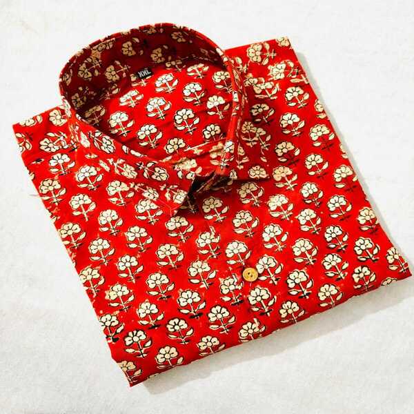 4950 Piece Description : A Hand Block Printed Cotton Shirt Is Made From Comfortable, Natural Cotton Fabric Decorated With Designs Carved Onto Wooden Blocks By Skilled Artisans. Each Block Is Used To Press A Specific Color Onto The Fabric With Precision, Creating Intricate, Unique Patterns With Slight Irregularities That Highlight The Artisanal, Handmade Nature Of The Shirt. These Shirts Are A Blend Of Traditional Craftsmanship And Modern Style, Often Featuring Traditional Motifs, And Are Prized For Their Breathability And Lightweight Feel. Location : Rajasthan, India