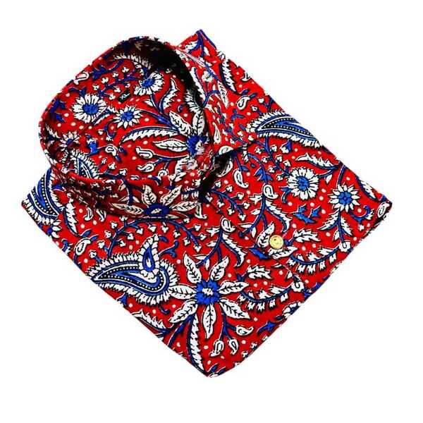 4950 Piece Description : A Hand Block Printed Cotton Shirt Is Made From Comfortable, Natural Cotton Fabric Decorated With Designs Carved Onto Wooden Blocks By Skilled Artisans. Each Block Is Used To Press A Specific Color Onto The Fabric With Precision, Creating Intricate, Unique Patterns With Slight Irregularities That Highlight The Artisanal, Handmade Nature Of The Shirt. These Shirts Are A Blend Of Traditional Craftsmanship And Modern Style, Often Featuring Traditional Motifs, And Are Prized For Their Breathability And Lightweight Feel. Location : Rajasthan, India