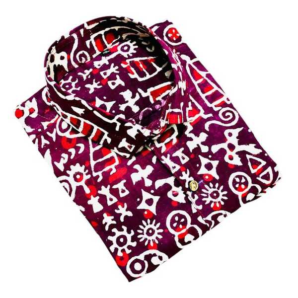 4950 Piece Description : A Hand Block Printed Cotton Shirt Is Made From Comfortable, Natural Cotton Fabric Decorated With Designs Carved Onto Wooden Blocks By Skilled Artisans. Each Block Is Used To Press A Specific Color Onto The Fabric With Precision, Creating Intricate, Unique Patterns With Slight Irregularities That Highlight The Artisanal, Handmade Nature Of The Shirt. These Shirts Are A Blend Of Traditional Craftsmanship And Modern Style, Often Featuring Traditional Motifs, And Are Prized For Their Breathability And Lightweight Feel. Location : Rajasthan, India
