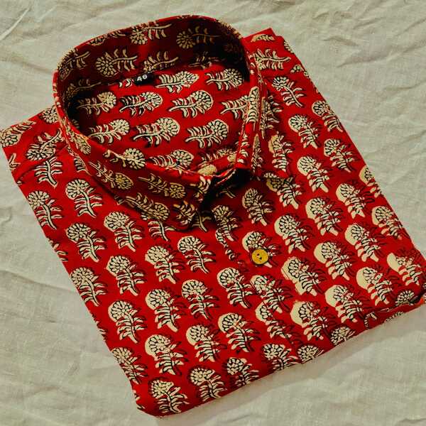 4950 Piece Description : A Hand Block Printed Cotton Shirt Is Made From Comfortable, Natural Cotton Fabric Decorated With Designs Carved Onto Wooden Blocks By Skilled Artisans. Each Block Is Used To Press A Specific Color Onto The Fabric With Precision, Creating Intricate, Unique Patterns With Slight Irregularities That Highlight The Artisanal, Handmade Nature Of The Shirt. These Shirts Are A Blend Of Traditional Craftsmanship And Modern Style, Often Featuring Traditional Motifs, And Are Prized For Their Breathability And Lightweight Feel. Location : Rajasthan, India