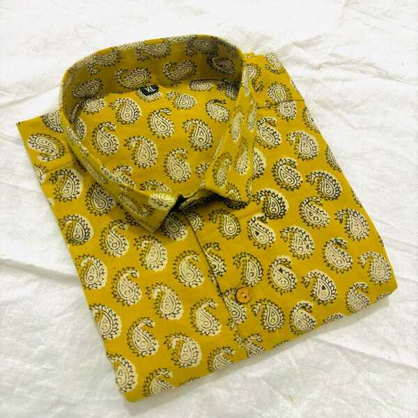 4950 Piece Description : A Hand Block Printed Cotton Shirt Is Made From Comfortable, Natural Cotton Fabric Decorated With Designs Carved Onto Wooden Blocks By Skilled Artisans. Each Block Is Used To Press A Specific Color Onto The Fabric With Precision, Creating Intricate, Unique Patterns With Slight Irregularities That Highlight The Artisanal, Handmade Nature Of The Shirt. These Shirts Are A Blend Of Traditional Craftsmanship And Modern Style, Often Featuring Traditional Motifs, And Are Prized For Their Breathability And Lightweight Feel. Location : Rajasthan, India