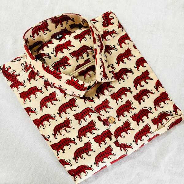 4950 Piece Description : A Hand Block Printed Cotton Shirt Is Made From Comfortable, Natural Cotton Fabric Decorated With Designs Carved Onto Wooden Blocks By Skilled Artisans. Each Block Is Used To Press A Specific Color Onto The Fabric With Precision, Creating Intricate, Unique Patterns With Slight Irregularities That Highlight The Artisanal, Handmade Nature Of The Shirt. These Shirts Are A Blend Of Traditional Craftsmanship And Modern Style, Often Featuring Traditional Motifs, And Are Prized For Their Breathability And Lightweight Feel. Location : Rajasthan, India