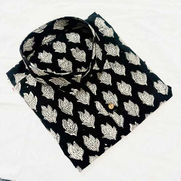 4950 Piece Description : A Hand Block Printed Cotton Shirt Is Made From Comfortable, Natural Cotton Fabric Decorated With Designs Carved Onto Wooden Blocks By Skilled Artisans. Each Block Is Used To Press A Specific Color Onto The Fabric With Precision, Creating Intricate, Unique Patterns With Slight Irregularities That Highlight The Artisanal, Handmade Nature Of The Shirt. These Shirts Are A Blend Of Traditional Craftsmanship And Modern Style, Often Featuring Traditional Motifs, And Are Prized For Their Breathability And Lightweight Feel. Location : Rajasthan, India