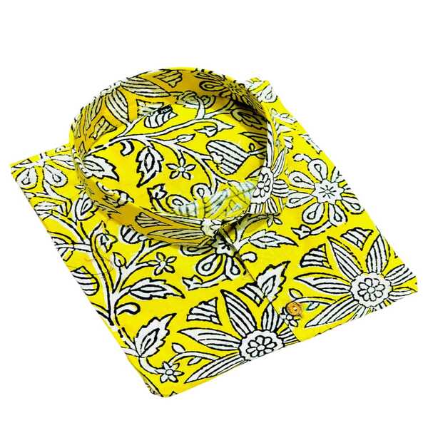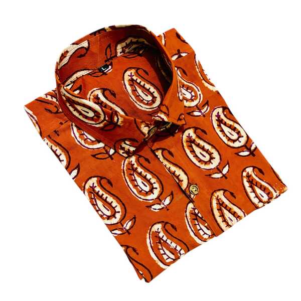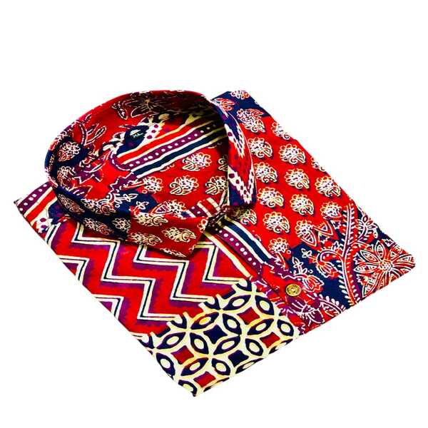 650 Piece Description : A Hand Block Printed Cotton Shirt Is Made From Comfortable, Natural Cotton Fabric Decorated With Designs Carved Onto Wooden Blocks By Skilled Artisans. Each Block Is Used To Press A Specific Color Onto The Fabric With Precision, Creating Intricate, Unique Patterns With Slight Irregularities That Highlight The Artisanal, Handmade Nature Of The Shirt. These Shirts Are A Blend Of Traditional Craftsmanship And Modern Style, Often Featuring Traditional Motifs, And Are Prized For Their Breathability And Lightweight Feel. Location : Rajasthan, India