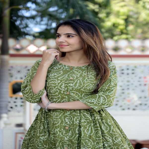 878 Piece Description : A Bagru Hand-block Printed Long One-piece Dress Is A Traditionally Crafted Garment From Rajasthan, India, Made With Eco-friendly Techniques And Natural Dyes. Skilled Artisans, Known As Chippas, Use Hand-carved Wooden Blocks To Stamp Intricate, Earthy-toned Motifs—often Inspired By Nature Or Geometric Patterns—onto Breathable Fabrics Like Cotton Cambric. The Distinctive Patterns Are Created Through A Time-honoured Process That Can Include The Mud-resist (dabu) Printing Method Before The Fabric Is Dyed. This Results In A Comfortable, Lightweight Dress With A Timeless Appeal That Showcases Authentic Craftsmanship. Location : Rajasthan, India