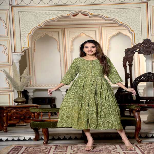 4950 Piece Description : A Bagru Hand-block Printed Long One-piece Dress Is A Traditionally Crafted Garment From Rajasthan, India, Made With Eco-friendly Techniques And Natural Dyes. Skilled Artisans, Known As Chippas, Use Hand-carved Wooden Blocks To Stamp Intricate, Earthy-toned Motifs—often Inspired By Nature Or Geometric Patterns—onto Breathable Fabrics Like Cotton Cambric. The Distinctive Patterns Are Created Through A Time-honoured Process That Can Include The Mud-resist (dabu) Printing Method Before The Fabric Is Dyed. This Results In A Comfortable, Lightweight Dress With A Timeless Appeal That Showcases Authentic Craftsmanship. Location : Rajasthan, India