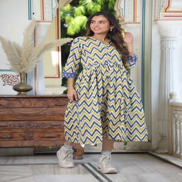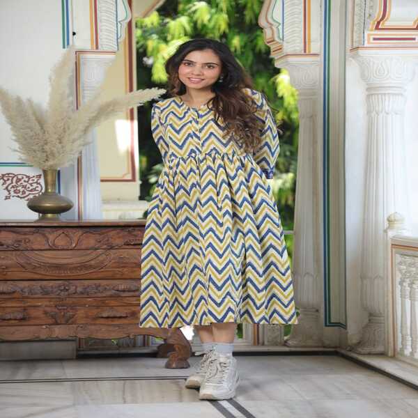 Home > Handlooms & Handcrafted > Womens Wear > Bagru Hand Block Printed Long One-piece Dress