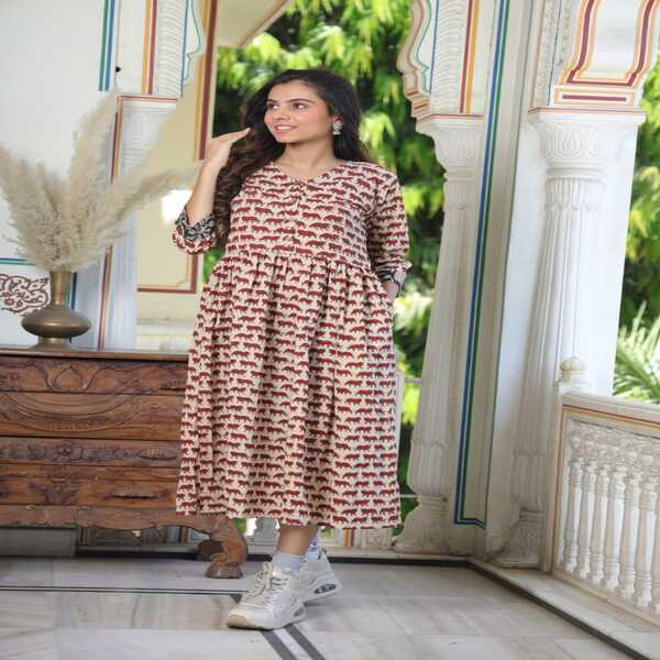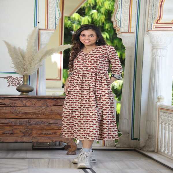 Home > Handlooms & Handcrafted > Womens Wear > Bagru Hand Block Printed Long One-piece Dress