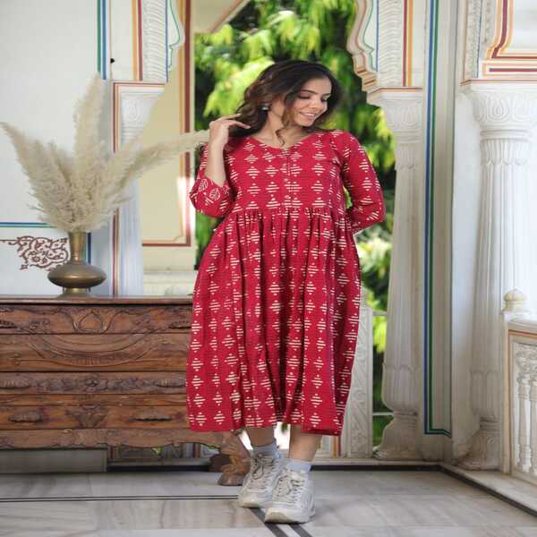 Home > Handlooms & Handcrafted > Womens Wear > Bagru Hand Block Printed Long One-piece Dress