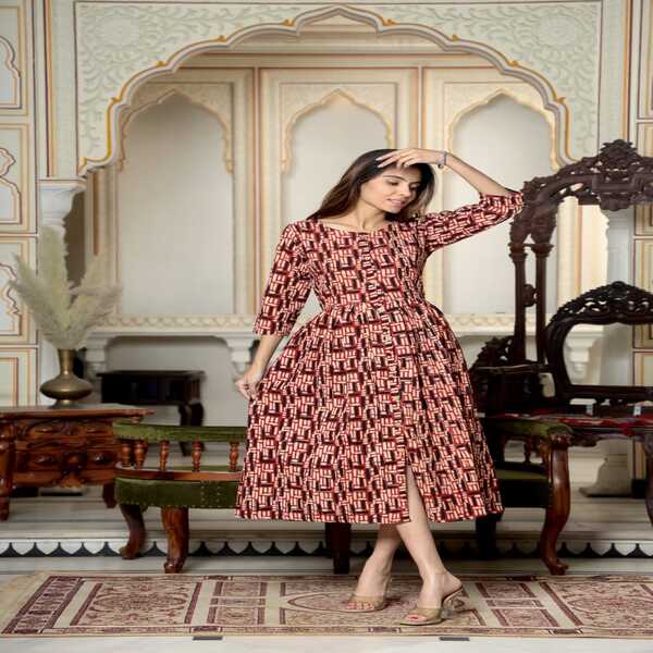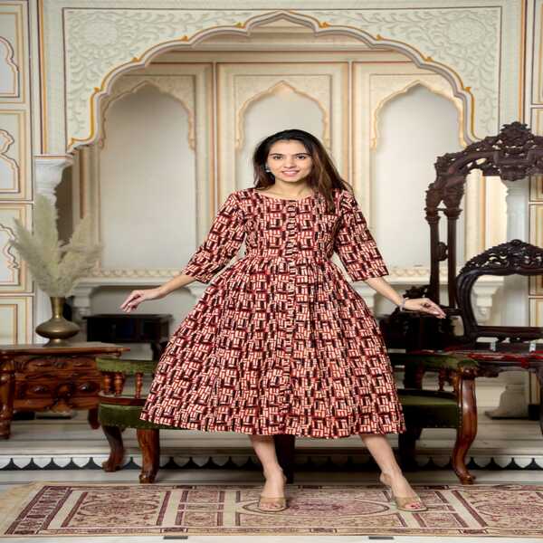 Home > Handlooms & Handcrafted > Womens Wear > Bagru Hand Block Printed Long One-piece Dress