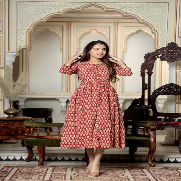878 Piece Description : A Bagru Hand-block Printed Long One-piece Dress Is A Traditionally Crafted Garment From Rajasthan, India, Made With Eco-friendly Techniques And Natural Dyes. Skilled Artisans, Known As Chippas, Use Hand-carved Wooden Blocks To Stamp Intricate, Earthy-toned Motifs—often Inspired By Nature Or Geometric Patterns—onto Breathable Fabrics Like Cotton Cambric. The Distinctive Patterns Are Created Through A Time-honored Process That Can Include The Mud-resist (dabu) Printing Method Before The Fabric Is Dyed. This Results In A Comfortable, Lightweight Dress With A Timeless Appeal That Showcases Authentic Craftsmanship. Location : Rajasthan, India