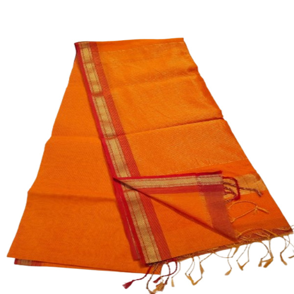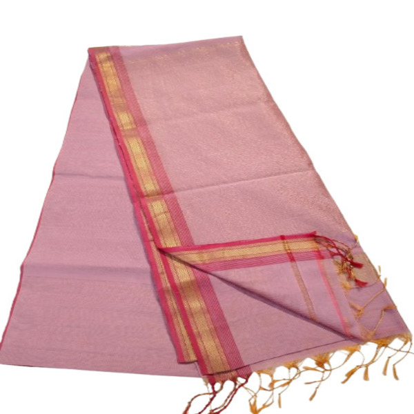 7150 Piece Description : A Maheshwari Silk By Cotton Weave Saree Is A Lightweight And Elegant Handloom Saree From Maheshwar, India, Made From A Blend Of Silk And Cotton Yarns For A Soft, Lustrous Feel. It Is Known For Its Reversible Border, Intricate Geometric Patterns, And Motifs Inspired By Architecture And Nature, Often Enhanced With Zari Work. The Combination Of Cotton And Silk Makes The Saree Both Comfortable And Elegant, Suitable For Various Occasions. Location : Madhya Pradesh, India