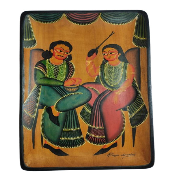 396 Piece Description : A Kalighat Wooden Wall Plate Is A Decorative Item Featuring A Hand-painted Design In The Traditional Kalighat Style, Originating From 19th-century Bengal. These Plates Are Made On A Wooden Base As A Modern Adaptation Of The Original Scroll And Paper Paintings. They Are Known For Bold Lines, Simple Shapes, Bright Colors, And A Variety Of Themes, Including Mythological Figures, Everyday Scenes, And Folk Tales. Location : West Bengal, India