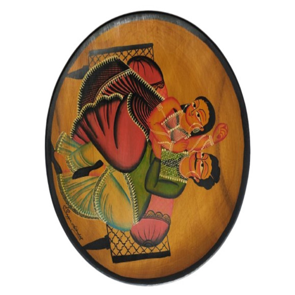 2405 Piece Description : A Kalighat Wooden Wall Plate Is A Decorative Item Featuring A Hand-painted Design In The Traditional Kalighat Style, Originating From 19th-century Bengal. These Plates Are Made On A Wooden Base As A Modern Adaptation Of The Original Scroll And Paper Paintings. They Are Known For Bold Lines, Simple Shapes, Bright Colors, And A Variety Of Themes, Including Mythological Figures, Everyday Scenes, And Folk Tales. Location : West Bengal, India