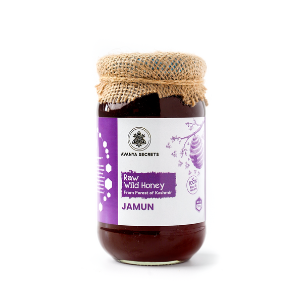 624 Bottle Net Weight : 250 Gram Description : Avanya Secrets Wild Jamun Honey Is A Premium Wild Honey Harvested By Wild Bees From Jamun Blossoms In The Untouched Forests Of Jammu And Kashmir. This Natural Honey Features A Deep Purple Tint And A Unique Flavour- Sweet With A Subtle Bitter Undertone—reflecting The Medicinal Richness Of The Jamun Tree. With Minimal Processing Using The Traditional Single Filtration Method, This Raw Honey Stays Pure—retaining Its Original Enzymes, Nutrients, And Antioxidants. As A Pure, Organic Honey, It Stands Out As A Rare, Nutrient-rich Superfood With A Bold Taste. Ethically Sourced : Guided By Nature-first Values, We Maintain The Purity Of This Forest Honey With No Artificial Additives, Preservatives, Or Sugar. Refined Through The Traditional Single Filtration Method, This Unprocessed Honey Retains Its Wholesome Quality And Medicinal Benefits. Responsibly Sourced Through Ethical Beekeeping, Our Wild Jamun Honey Is Crafted With Care For A Truly Artisanal Experience That Captures The Natural Goodness Of Kashmirs Wild Landscapes, Ideal For Those Seeking Organic Honey With Health Advantages. Location : Jammu & Kashmir, India