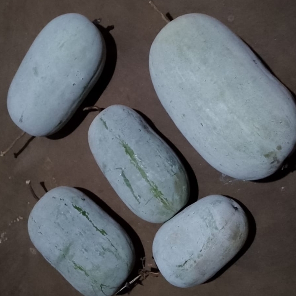 1540 Piece Description : Ash Gourd Is A Large, Oval Or Round Vegetable With Pale Green Skin Covered In A Powdery, Ash-like Coating, Which Gives It Its Name. Its Crisp, White Flesh Is Mild In Flavor And A Staple In Many Asian Cuisines, Used In Both Sweet And Savory Dishes Like Curries, Juices, And Candies. Known As Winter Melon Or White Gourd, It Is Low In Calories, High In Water And Fiber, And Valued For Its Cooling Properties And Health Benefits, Such As Aiding Digestion And Hydration. Location : Tripura, India