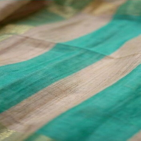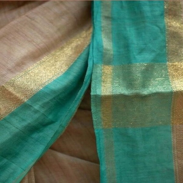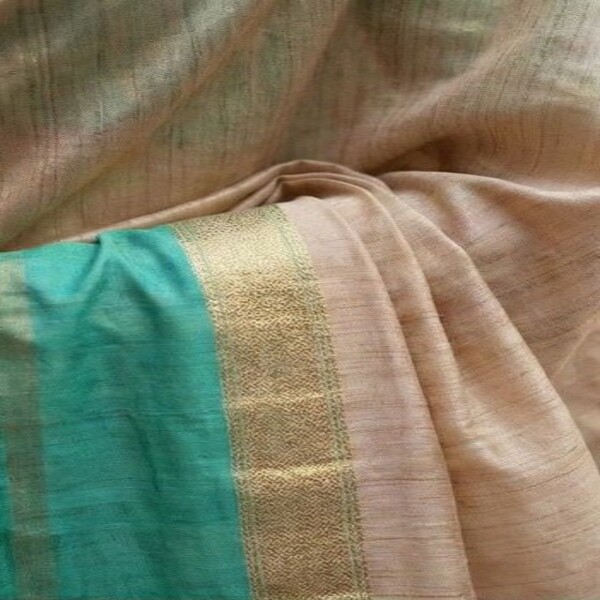 Description : A Pure Desi Tussar Silk Saree Is A Handwoven, Natural Silk Known For Its Rich, Earthy Golden Hue, Unique Grainy Texture, And Subtle, Natural Sheen, Derived From Wild Silkworms Feeding On Forest Leaves. It Is Lightweight, Breathable, Comfortable For All Seasons, And Features Intricate, Hand-printed Or Woven Designs With Traditional Motifs, Offering A Rustic Yet Regal Look Perfect For Both Casual And Festive Wear. Often Handwoven, Featuring Block Prints, Traditional Zari Work, Or Contemporary Designs, With Potential For Natural Dyes. Location : Bihar, India