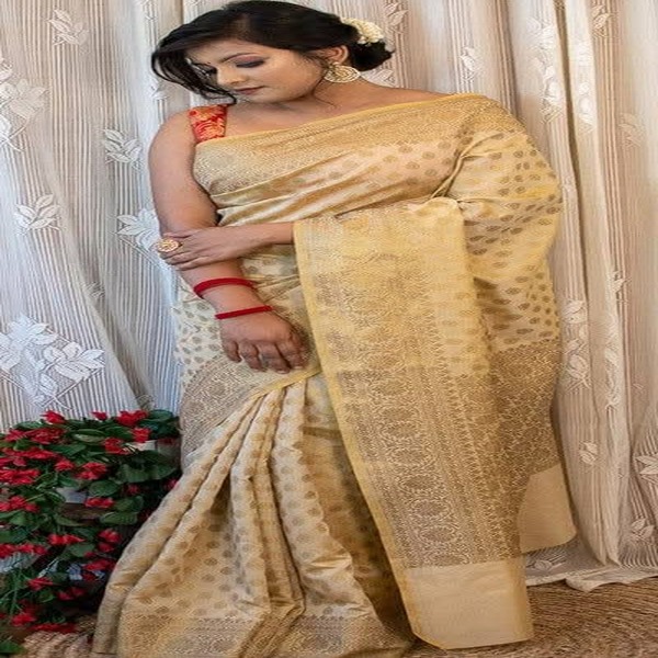 Description : A Katan Banarasi Saree Is A Luxurious Silk Saree Woven From Pure, Twisted Silk Threads (katan), Creating A Fine, Strong, Smooth, And Lustrous Fabric, Famous For Its Rich, Intricate Designs Featuring Gold/silver Zari, Mughal Motifs, And Paisley Patterns, Making It A Regal Heirloom Perfect For Weddings And Festivals, Offering A Balance Of Lightweight Drape And Substantial Feel. Crafted Using A Technique Where Two Silk Threads Are Twisted Together, Giving The Fabric Durability And Shine. In Essence, A Katan Banarasi Is A Premium, Traditional Handloom Saree Known For Its Pure Silk Elegance And Intricate Artistry, A True Treasure Of Indian Textiles. Location : Bihar, India