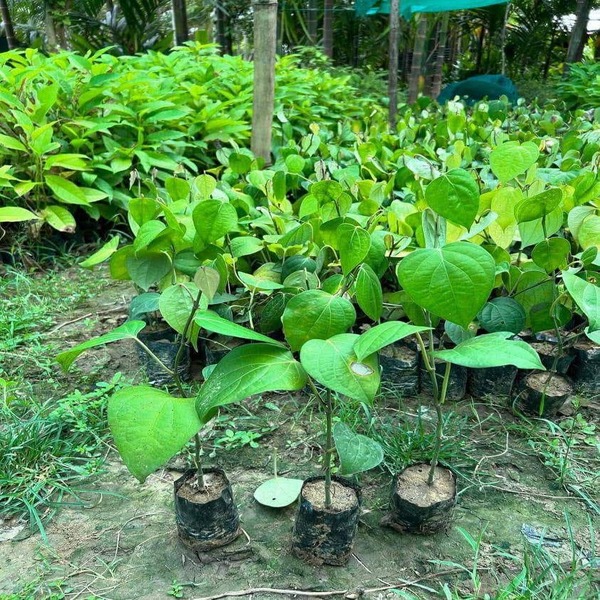 Black pepper saplings are young, vining plants of Piper nigrum, featuring glossy, heart-shaped green leaves on slender stems, needing warm, humid conditions, partial shade, and support like a trellis or tree to climb, with the promise of developing spikes of small berries that turn into peppercorns, growing into a perennial vine up to 10 meters tall with proper support. They are typically propagated from cuttings and require consistently moist, well-draining soil, regular watering, and fertilization for healthy growth. Location : Assam, India
