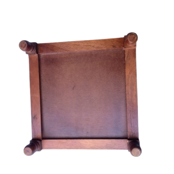 880 Piece Description : A Blue Art Pottery Wooden Chowki Is A Decorative Or Spiritual Platform Made Of A Wooden Base With A Blue Art Pottery Ceramic Top. The Wooden Part Is Often Polished, While The Pottery Inlay Features Hand-painted, Traditional Designs, Typically In Shades Of Blue, And May Include Floral, Animal, Or Geometric Motifs. These Chowkis Are Used For Religious Ceremonies, As A Decorative Centrepiece, Or For Serving, And Can Vary In Size And Colour. Location : Rajasthan, India