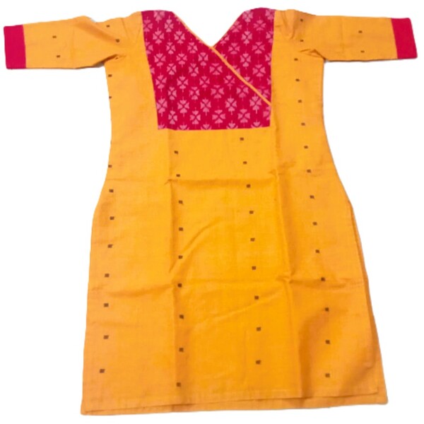 1560 Piece Description : A Sambalpuri Kurti Is A Traditional Handwoven Garment From Odisha, India, Known For Its Intricate Ikat (tie-dye) Patterns, Often Featuring Geometric Shapes Like The Pasapalli (checkerboard) Design. These Kurtis Are Typically Made From Comfortable, Breathable Cotton And Come In A Wide Range Of Vibrant Colours, Making Them Suitable For Both Casual And Festive Wear. Location : Odisha, India