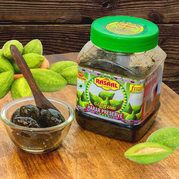 1140 Bottle Net Weight : 5 Kg Description : Harad Murabba Is A Traditional Ayurvedic Sweet Preserve Made By Simmering Whole Harad (terminalia Chebula) Fruits In Sugar Syrup, Often Enhanced With Spices Like Cardamom Or Black Salt. It Has A Unique, Tangy, And Sweet (khatta-meetha) Taste, Commonly Used To Improve Digestion, Relieve Constipation, And Boost Immunity. It Acts As A Nutrient-rich, Rejuvenating Tonic. Location : Haryana, India