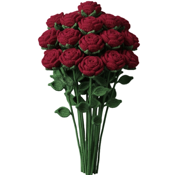 Handmade crochet rose flowers are durable, everlasting decorative items meticulously crafted from cotton or acrylic yarn. They feature intricate, three-dimensional petals, often in shades like red, pink, or lavender, with green leaves and a wire-supported stem. These versatile, eco-friendly blooms never wilt, making them ideal for home décor, bouquets, or gifts. Location : Arunachal Pradesh, India