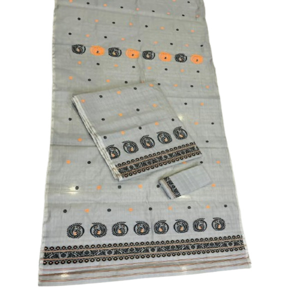 5200 Set Description : A Cotton Kesa Paat Mekhela Chadar Is A Traditional Assamese Handwoven Garment Made From A Blend Of Cotton And Raw Mulberry Silk (kesa Paat), Resulting In A Lightweight, Breathable, And Durable Fabric With A Unique Texture, Consisting Of A Pleated Wrap-around Skirt (mekhela) And A Long Drape (chadar) For The Upper Body, Often Featuring Intricate Woven Patterns And Designs Suitable For Comfort And Cultural Elegance. Location : Assam, India