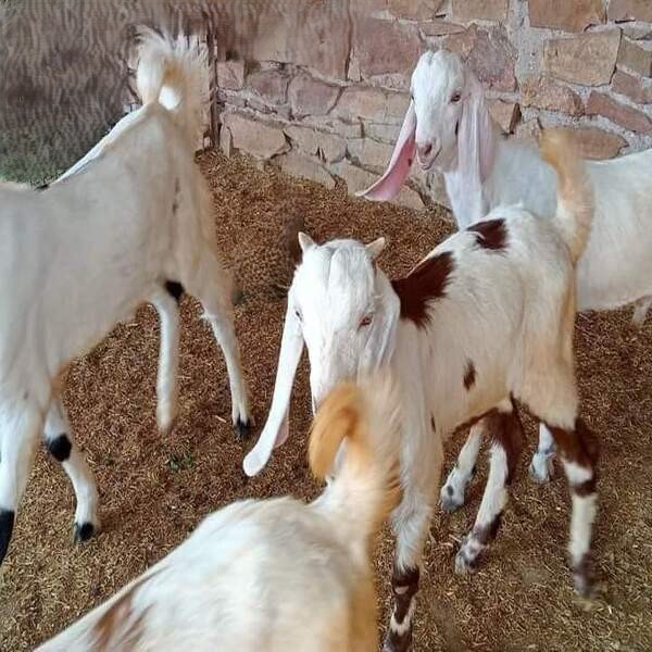 385 Kg Description : Sojat Male Goats Are A Large, Meat-type Breed From Rajasthan, India, Known For Their Distinctive Long, Flat, Drooping Ears, White Coat (sometimes With Brown/black Patches), And Good Carcass Quality, Weighing Around 50-60 Kg. Males Often Have Short Tails, Can Have Small, Curved Horns Or None, And Are Valued For Their High-quality, Tender Meat, Though They Can Also Have Wattles And Beards. Native To The Sojat Region Of Rajasthan, India, And Considered A Derivative Of Breeds Like The Jamnapari. Location : Rajasthan, India